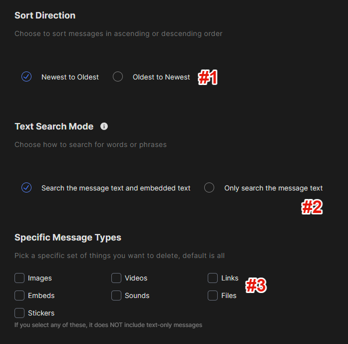 - This option allows you to start at the beginning of your history and search forward. Or you can start at your newest messages, and search them backwards. This setting is useful for people who have a lot of history within their Discord account.