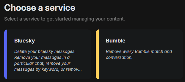 Redact gives you options to delete specific types of Bumble content: